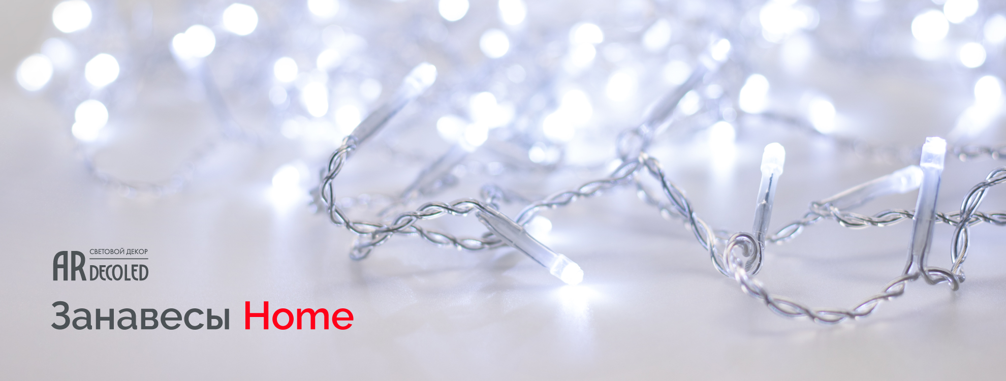 Гирлянды «Занавес» серии HOME представляют собой ниспадающие нити равной длины на одном кабеле. Гирлянды данной серии можно использовать для зонирования пространств вместо перегородки, а также для оформления окон, зеркал и свободных стен в домашнем интерьере.