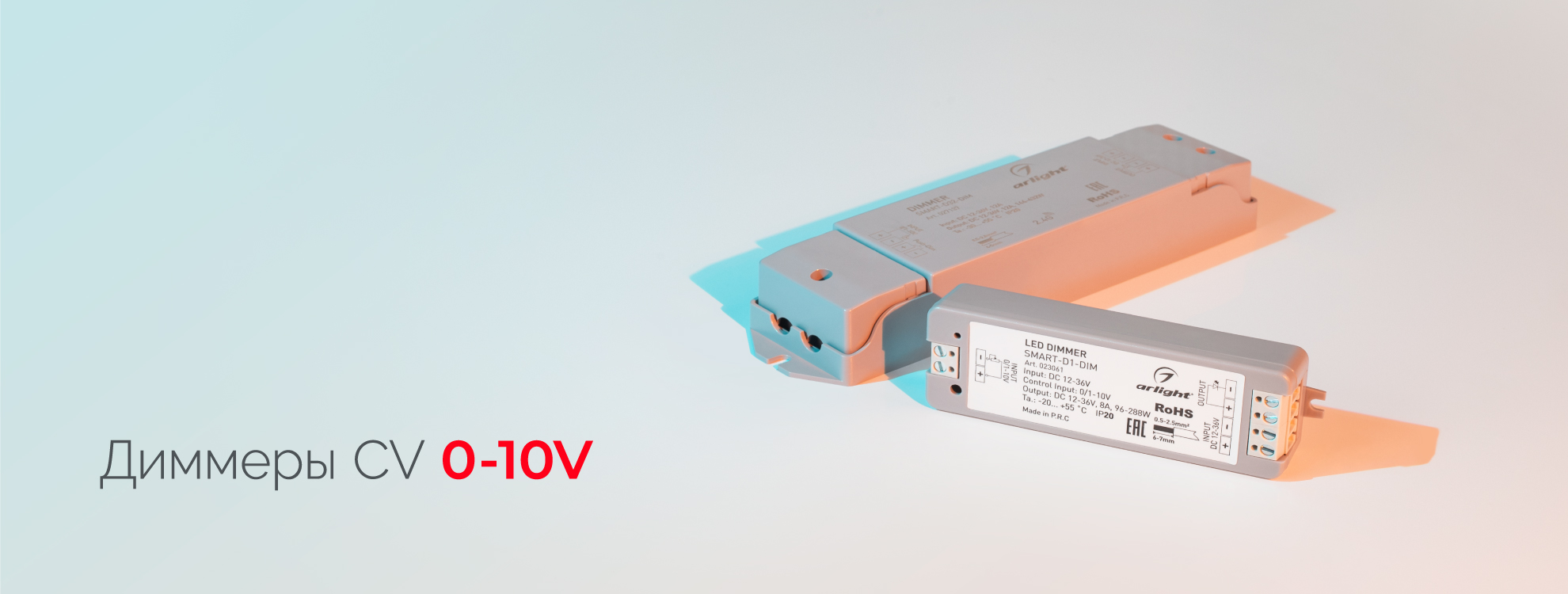 Диммеры 0/1–10 В предназначены для управления одноцветными светодиодными лентами, модулями, прожекторами и другими светодиодными источниками света с напряжением питания 12–36 В.