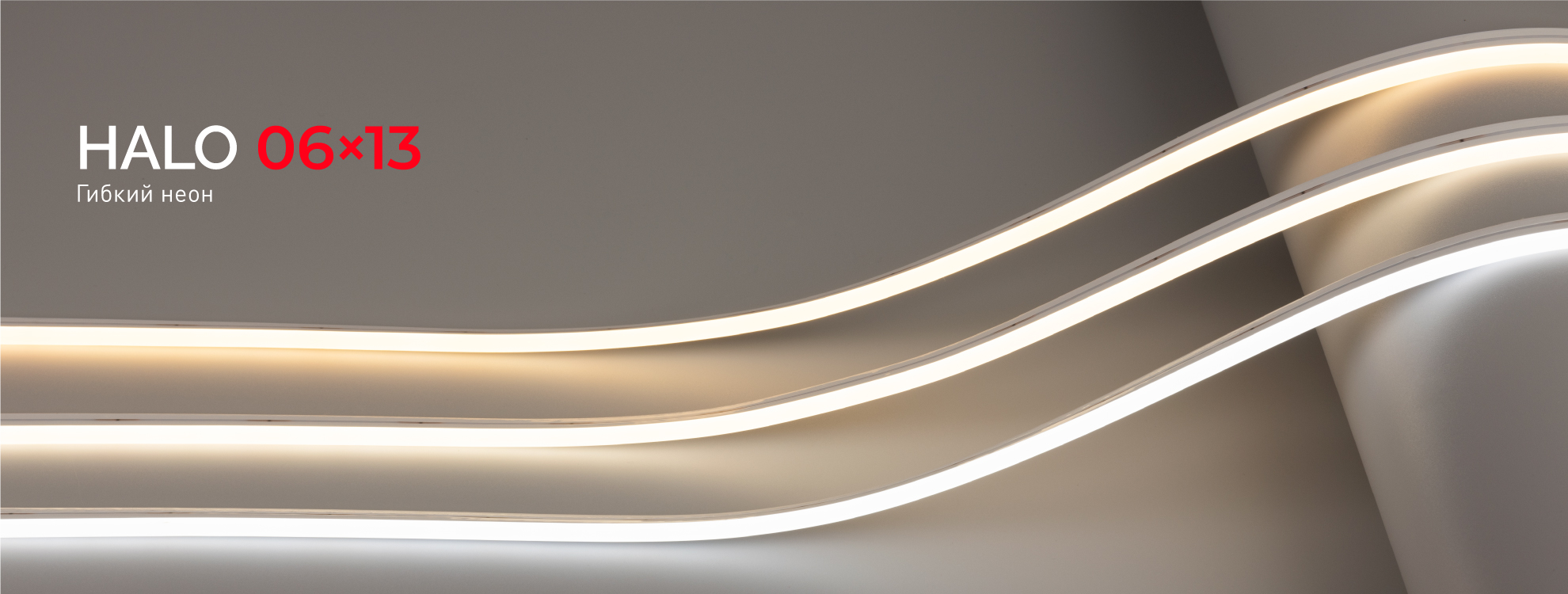 Гибкий неон HALO — элегантная декоративная подсветка современных интерьеров и мебели. Хорошо подходит для домов, ресторанов, офисов и спортзалов, создавая мягкое освещение с цветопередачей CRI>80. Миниатюрное сечение 6×13 мм органично вписывается в любой дизайн. Грибовидная форма обеспечивает равномерное свечение с плавной границей светового пучка. Благодаря защите IP67 неон безопасно использовать во влажных помещениях, например, в ванных комнатах или WC коммерческих помещений.