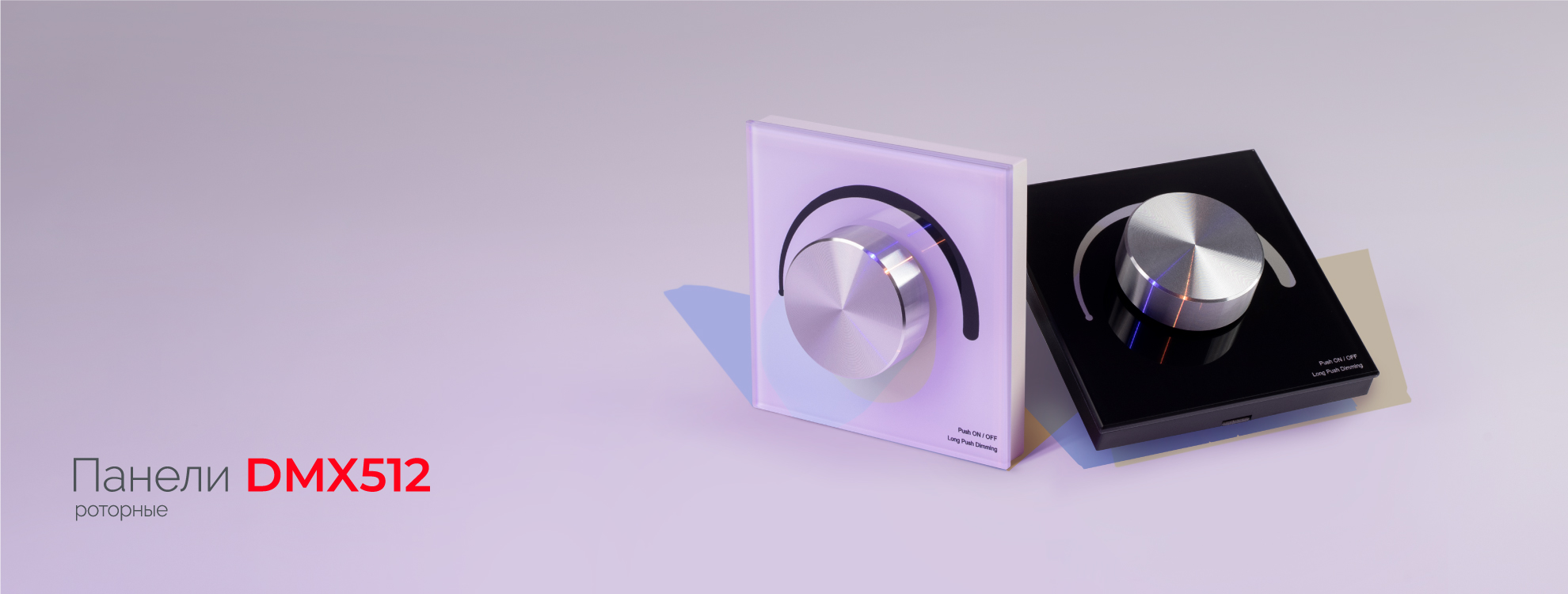 Роторные панели предназначены для включения, выключения и регулировки яркости одноцветных источников света, управляемых по протоколу DMX512. Совместимы с контроллерами серии SMART, поддерживающими управление по радиоканалу (RF).