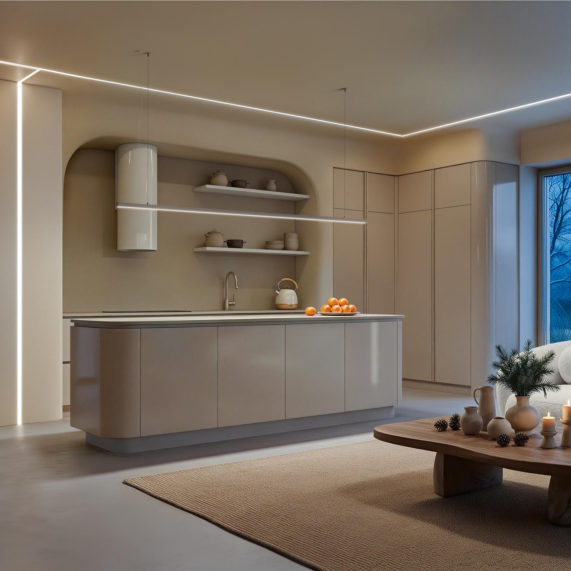 Встраиваемый профиль со скрытым фланцем под строительную отделку из анодированного алюминия серебристого цвета для основной и контурной подсветки помещений. Габаритные размеры профиля составляют 2000 мм в длину, 65 мм в ширину и 25 мм в высоту. Паз для установки 25 мм. Площадка для установки светодиодных лент позволяет использовать ленту шириной до 12,8 мм и мощностью до 36,9 Вт/м. Это обеспечивает гибкость в выборе светодиодных лент и создает потрясающие световые решения.