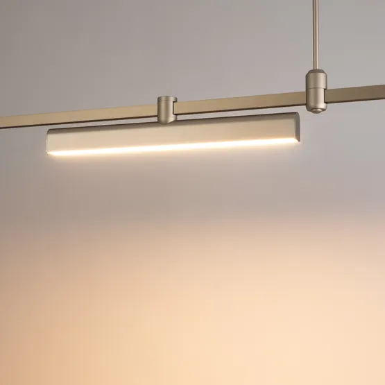 Светильник для треков APRIORI шириной 17 мм. Мощность 15 Вт, св. поток 600 лм, 40 лм/Вт, теплый 3000 K, CRI>90, угол 120°, напряжение питания 48 В. Линейный корпус из алюминия, гальванизированного в цвет серо-оливковый, экран поликарбонат, степень защиты IP20. Размер: длина 500 мм, ширина 38 мм, высота 95 мм (вместе с корпусом крепления). Диаметр крепления 38 мм. Монтаж на трек APRIORI 17 мм. Пульсация <1%. Возможно диммирование по ШИМ (PWM) или не адресное управление при использовании диммируемого драйвера Dali, 0-10V, TRIAC.