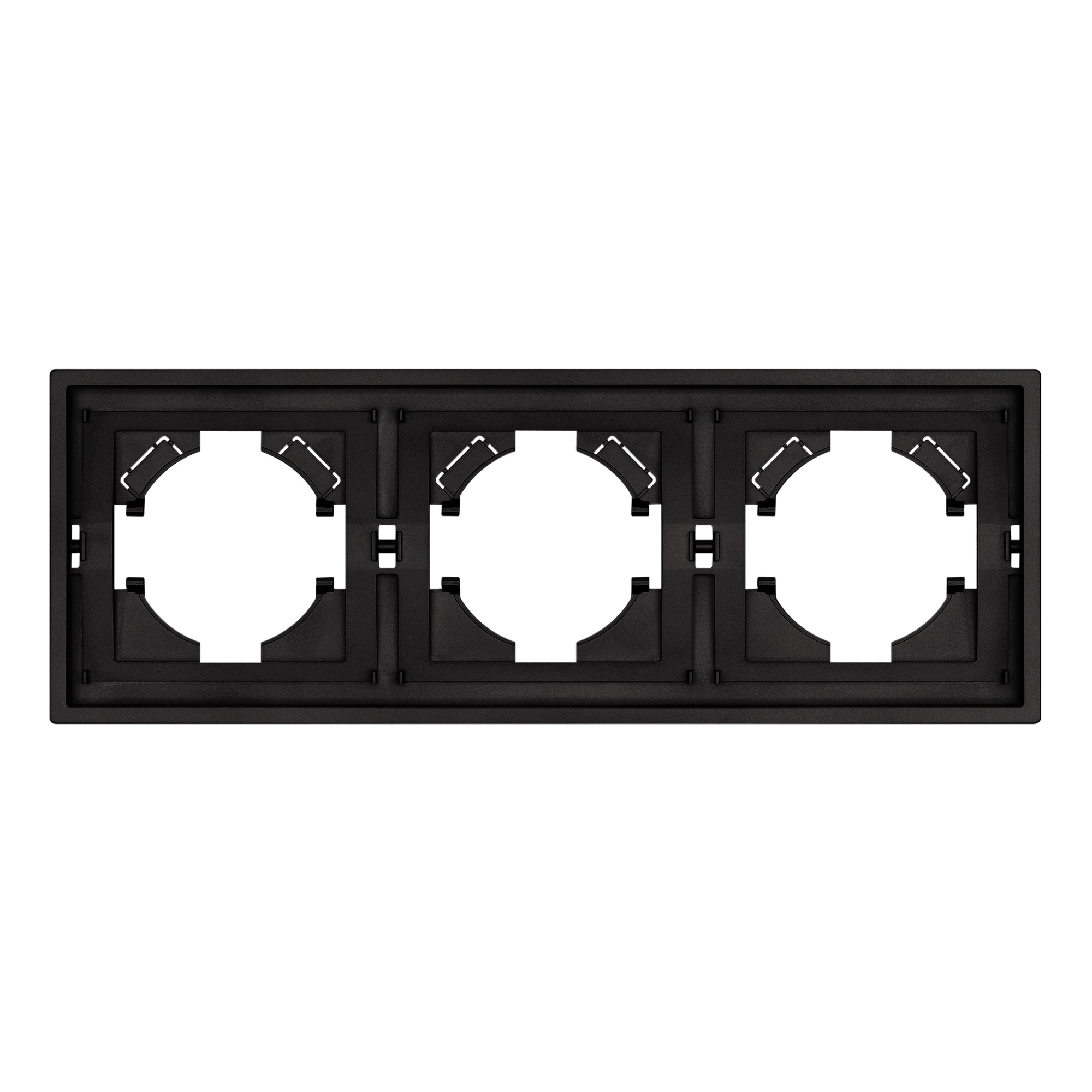 Рамка пластиковая на 3 поста, под встраиваемый механизм. Цвет - черный, с Soft-Touch покрытием. Среднего уровня герметичности IP20. Ориентация монтажа горизонтальная. Габаритные размеры: длина 221 мм, ширина 80 мм, высота 9 мм. Гарантийный срок 12 мес.