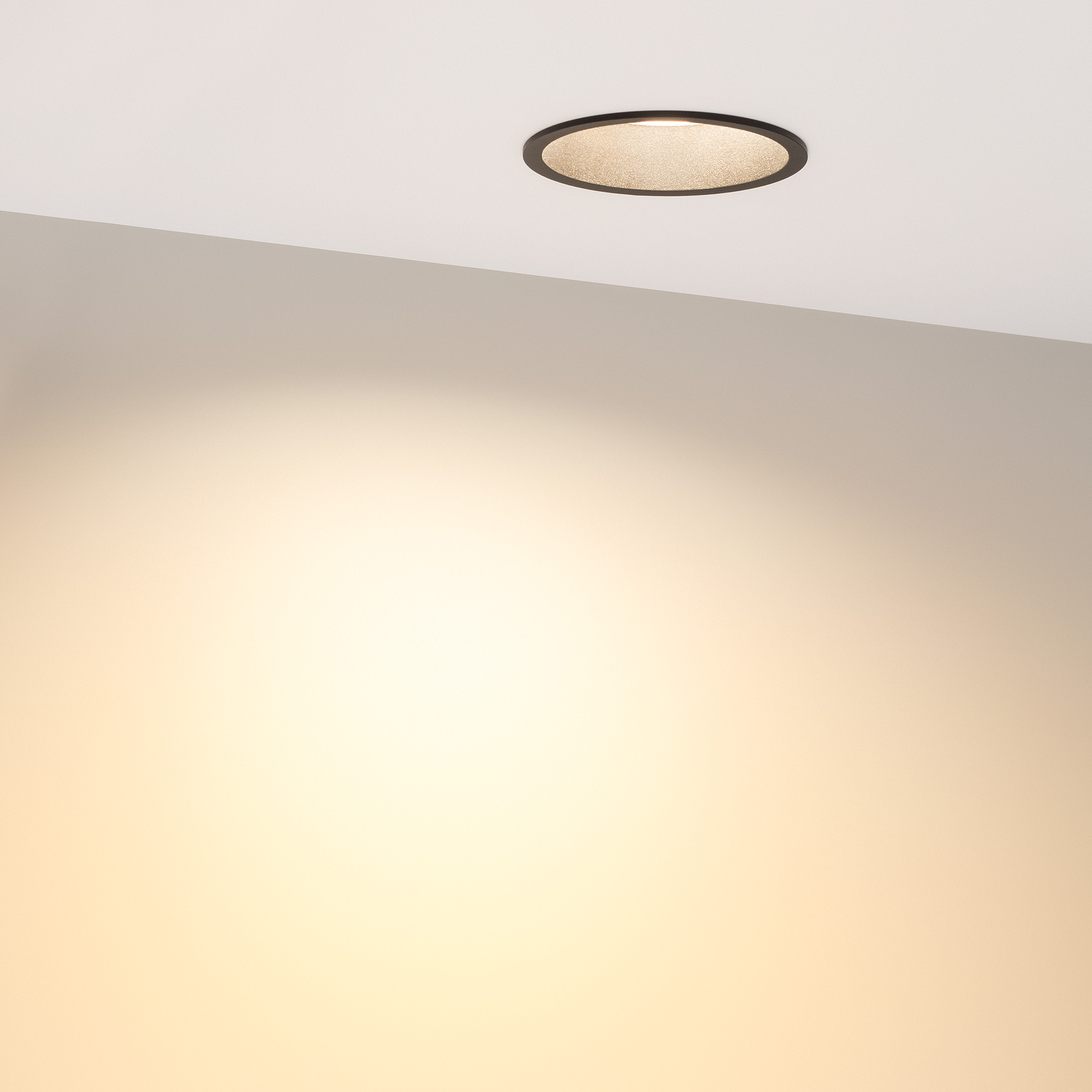 Встраиваемый круглый светильник c высоким индексом цветопередачи CRI>90 обеспечивает качественное освещение с точной передачей цветовых оттенков. Алюминиевый корпус черного цвета с утопленным светодиодным модулем является интересным дизайнерским решением, создавая эффект света из ниоткуда, делая освещение очень комфортным для глаз. Особая конфигурация корпуса позволяет эффективно отводить тепло и продлевает срок службы светодиодов. Светильник с широким углом рассеивания 85 градусов и светоотдачей 56 лм/Вт создает равномерное свечение без мерцаний. Легко устанавливается с помощью пружин в монтажное отверстие. Драйвер поставляется в комплекте и позволяет быстро подключать светильник напрямую к сети переменного тока 230 В. Диммирование возможно при замене штатного драйвера. Предназначен для основного освещения в жилых, коммерческих, торговых помещениях, где отсутствует контакт с водой.