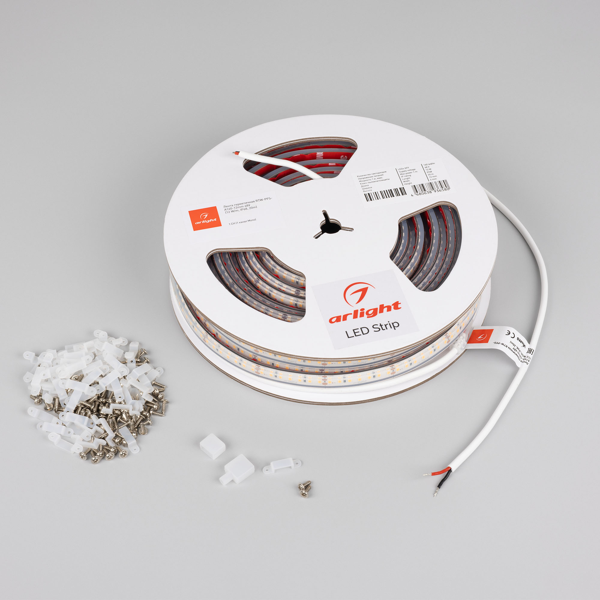 Светодиодная герметичная лента RTW серии A140 с подключением до 20 м с одной стороны. Степень защиты IP68, лента в силиконовой оболочке, устойчива к УФ излучению, широкий диапазон рабочих температур -40..60°C. Светодиоды SMD 2835, 140 шт/м, теплого цвета свечения (3000K). Предназначена для декоративной подсветки в помещениях и на улице. Имеет увеличенный кабель питания 1 м для удобства монтажа и установки. В комплекте силиконовая заглушка глухая - 1 шт, силиконовая заглушка под провод - 1 шт, силиконовые скобы - 60 шт.