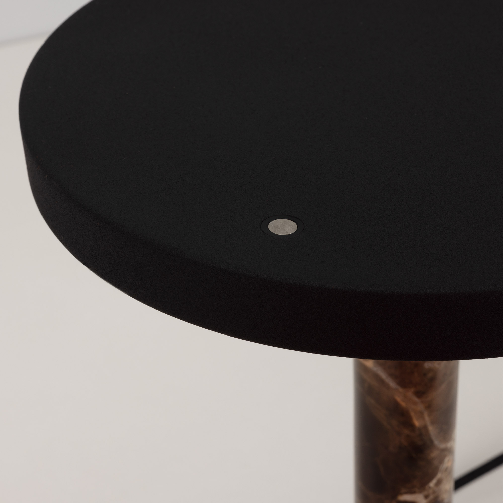 Настольный светильник ALYSS. С изменяемой цветовой температурой 2700/3200/4000К, переключается коротким нажатием на сенсорную кнопку на плафоне, диммирование происходит за счет ее удержания. Мощность 5 Вт, св. поток 195 лм, 39 лм/Вт, CRI>92, угол 110°, напряжение питания 230 В. Черный корпус из алюминия, декоративная вставка из мрамора, степень защиты IP20. Размер: диаметр 225 мм, высота 300 мм. Пульсация <1%.