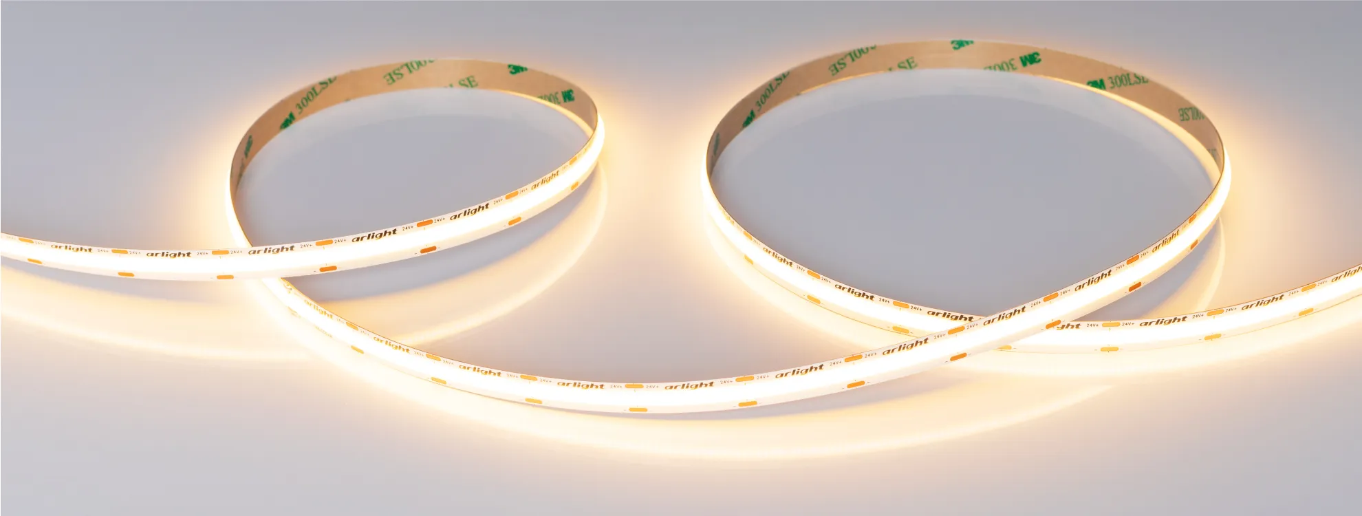 Бескорпусная COB-лента X576 — это сплошная линия света, которой для равномерного свечения не нужны рассеиватели. Подходит практически для всех типов помещений — от жилых до промышленных. Предназначена для основной и декоративной подсветки.