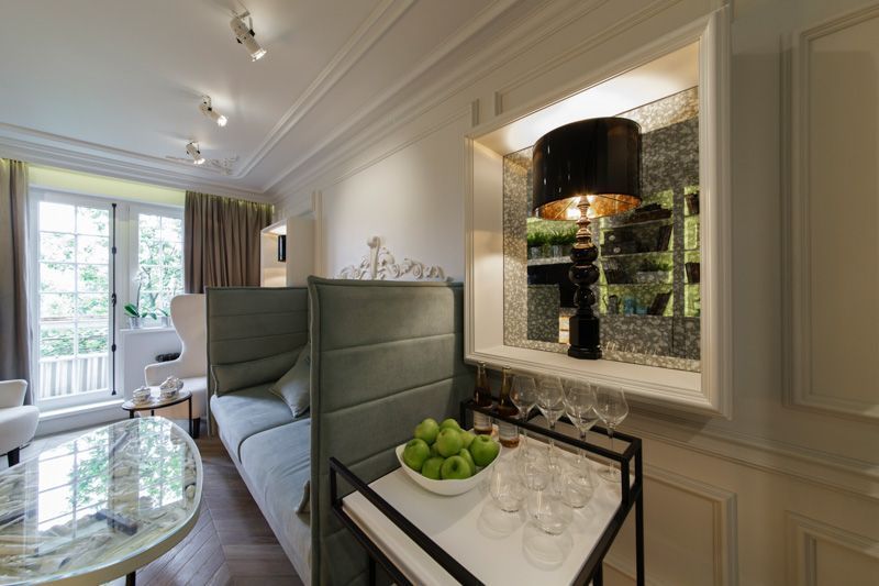 Одним из центральных декоративных элементов стал каминный портал, собранный из фактурного искусственного камня. Он обладает необычным цветом, который удалось получить благодаря использованию дополнительных минералов и цветовых присадок – от сланца до керамики. Красивую поверхность камня подчеркнули светодиодной подсветкой, благодаря чему каминный портал обрёл еще более эффектный вид. Для организации подсветки светодиодную ленту arlight® установили по принципу витражной подсветки - позади камня, по периметру конструкции.