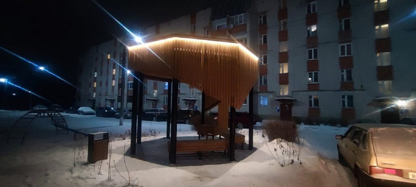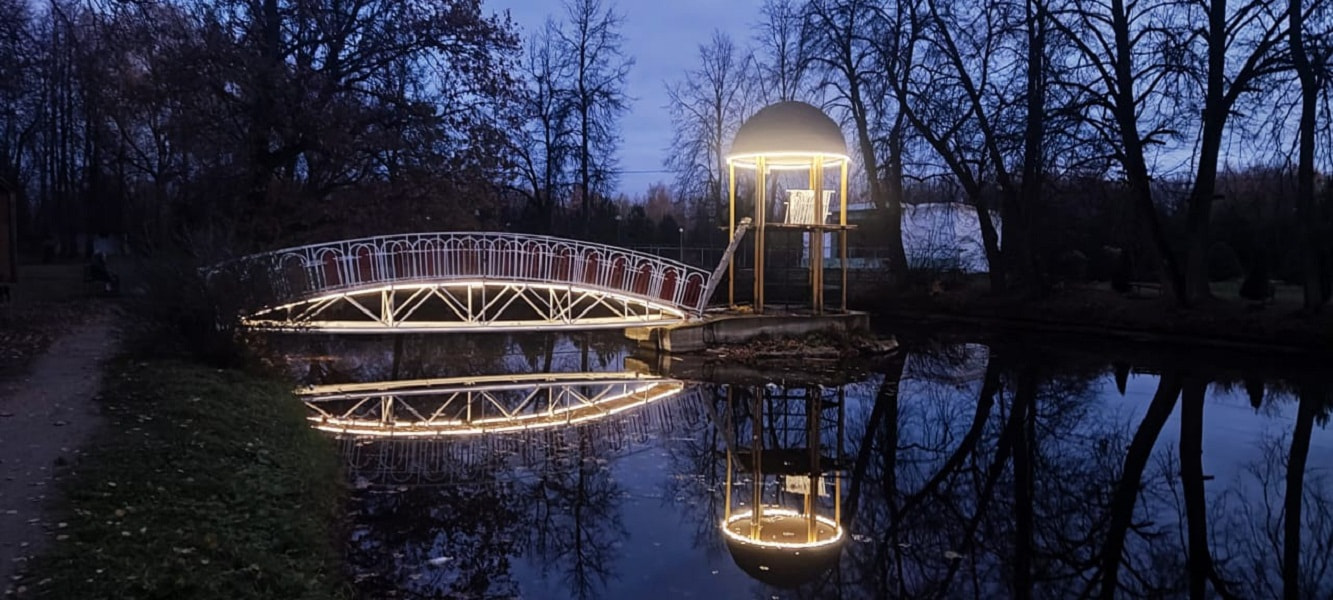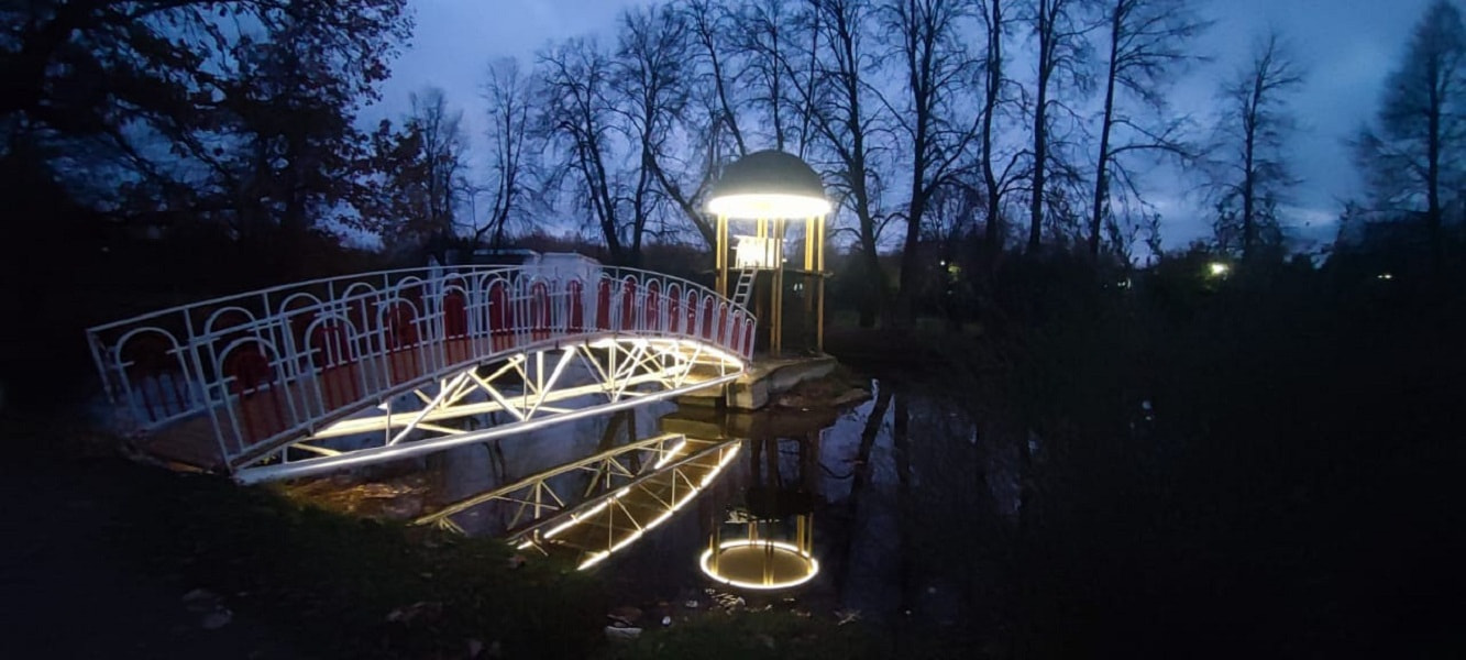 Монтаж подсветки беседок во дворах и реконструкция моста в парке.