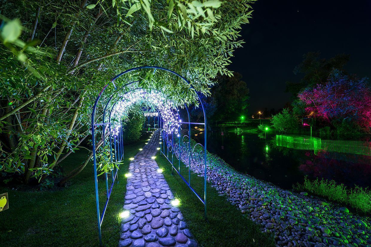 Проект светодиодной ландшафтной подсветки и светодиодной подсветки садового мостика над декоративным водоёмом в небольшом парке.
