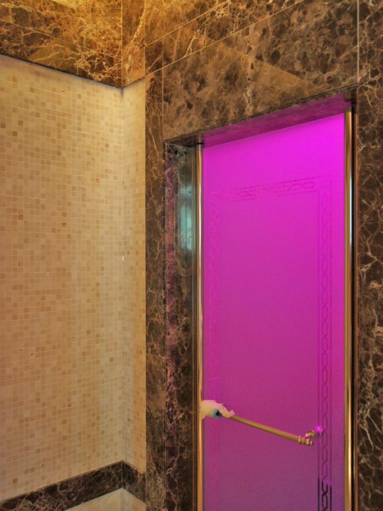 Светодиодное освещение было установлено в загородном доме, интерьер которого выполнен в классическом стиле. Декоративная контурная подсветка, установленная за полиуретановыми карнизами, придала внутренней обстановке дома сказочность и неповторимость.